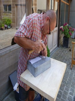 Letters in Steen is een dynamische groep beeldhouwers die zich heeft gespecialiseerd in het bewerken van steen en het kappen van letters. Oorspronkelijk voortgekomen uit de beeldhouwersgroep Taille Directe@pensionaat, is de groep door de jaren heen gegroeid en heeft zij zich verder ontwikkeld onder leiding van Chantal Noppe. De leden leren en perfectioneren de techniek van het letterkappen, wat resulteert in unieke en persoonlijke werken. Letters in Steen bestaat uit een diverse groep van kunstenaars die, ondanks de uitdagingen van de afgelopen jaren, vastberaden zijn om hun vak te blijven uitoefenen en hun kunst te delen.