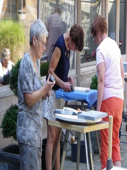 Voorheen had zij al, in opdracht van een plaatselijke crea winkel, workshops volksschilderen, zijdeschilderen en glasgravure begeleid.